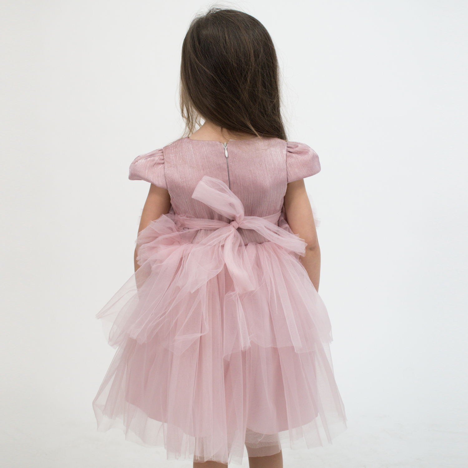 Stunning baby dress with layered tulle bottom, cap sleeves, and puffy flowers on the waistline. Its cotton lining will make it very comfortable for your baby girl. Perfectly use it as her baptism dress! A JuniorKids exclusive design!